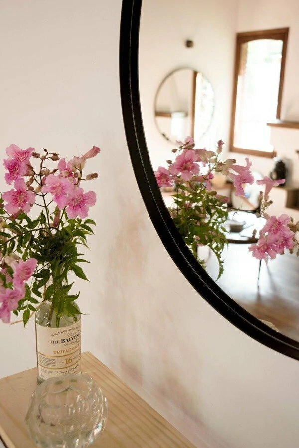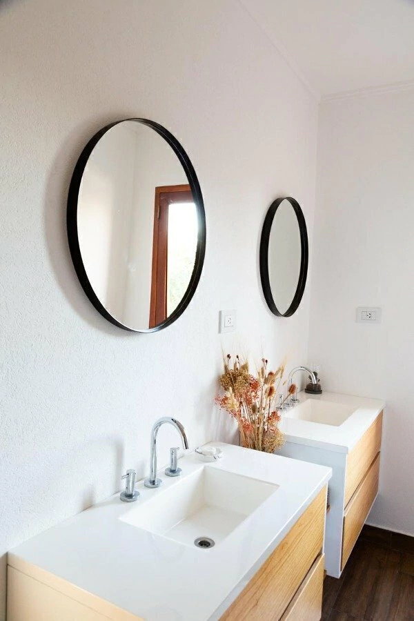 Espejo circular 100% cristal, con marco de hierro pintado al horno. Incluye arandela soldada detrás para colgar.