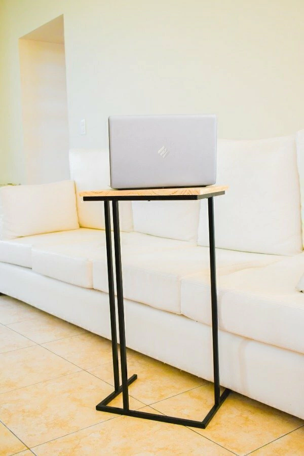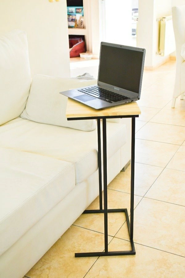Mesa auxiliar XL estilo industrial. Fabricada en hierro pintado al horno y madera de pino elliottis virgen cepillado.