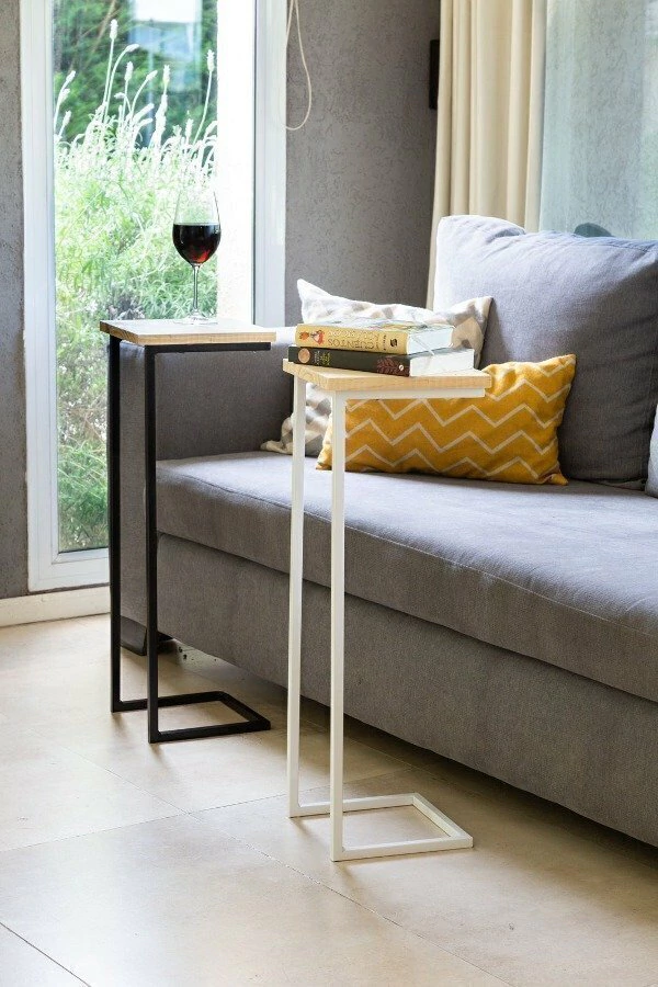 Set (x2 unidades) de mesas de arrime estilo industrial. Fabricadas en hierro y madera de pino elliottis virgen cepillado.
